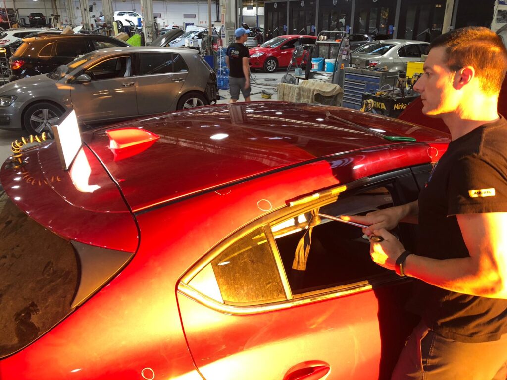 PDR es una técnica avanzada que permite eliminar abolladuras de la carrocería sin necesidad de repintar el vehículo. Se utilizan herramientas especializadas para masajear el metal desde el interior, devolviendo el panel a su forma original mientras se preserva la pintura de fabrica.
